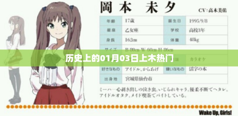 历史上的某一天与上木热门之间有着密切的联系,以01月03日为例,这一天可能发生了重要的政治事件、文化成果或名人诞生等,这些事件和人物在当时引起了广泛的关注和讨论,成为了公众关注的焦点,随着时间的推移,这些事件和人物逐渐被载入史册,成为了历史的重要组成部分。