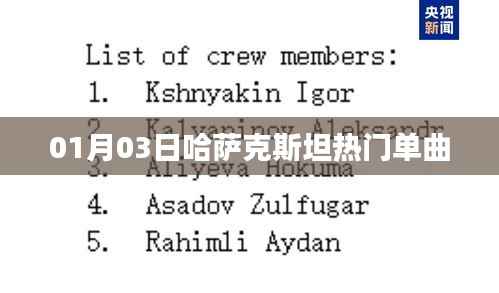 XXXX年1月3日的哈萨克斯坦热门单曲是该国音乐产业的重要组成部分,它们不仅为人们提供了娱乐和休闲的方式,也反映了哈萨克斯坦的音乐风尚和文化特点,这些歌曲的影响力和传播范围广泛,成为了哈萨克斯坦年轻人的文化标志,通过深入研究这些热门单曲,我们可以更好地了解哈萨克斯坦的音乐产业和文化发展。